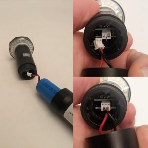 Be sure to unscrew the flashlight in the middle and connect the battery.